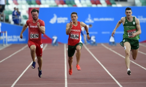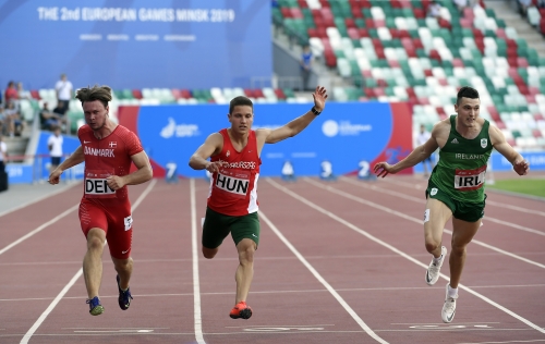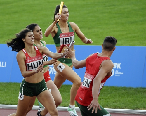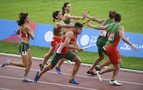 Második helyen végzett negyeddöntős csoportjában, így bejutott a szerdai elődöntőbe a magyar csapat a minszki Európa Játékok atlétikai versenyein. A vasárnapi selejtezők végén az egyéni és váltószámokban is érmeket osztottak, a csapatverseny pedig a szerdai elődöntőket követően a pénteki döntővel zárul. A magyarok korábban biztosan jutottak a negyeddöntőbe, Kerekes Gréta pedig 100 méter gáton bronzérmet nyert. A magyar csapat kedden a portugál, a ciprusi, a bolgár, a dán és az ír válogatottal küzdött meg. A magyarok remek teljesítményt nyújtottak, Kerekes 13.16 másodperccel megnyerte a 100 méter gátat (12 pont), Farkas Petra 6,17 méterrel második lett távolugrásban (10 pont), Moravcsik Angéla pedig gerelyben (54,92 méter), Eszes Dániel 110 méter gáton (14.37 mp) lett harmadik (8-8 pont), ahogy a 4x400 méteres és az üldözéses váltó is. A csapat így 63 pontot szerzett, amellyel második lett a 74 pontos portugálok mögött.