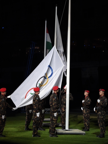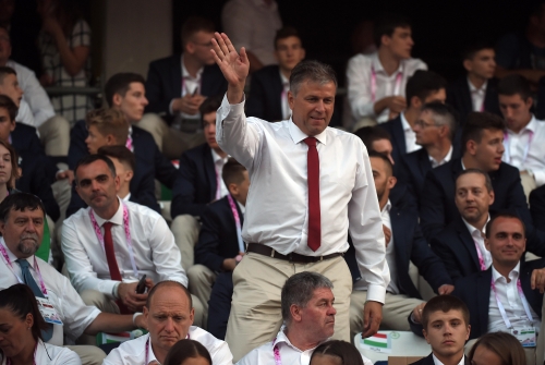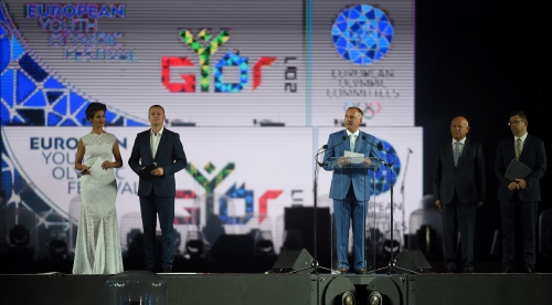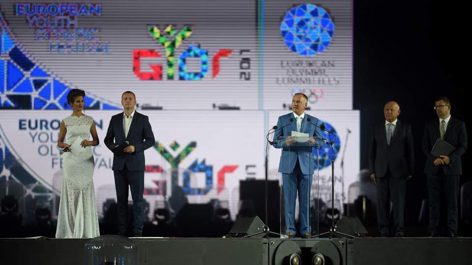 Jó estét magyar barátaim!" – kezdte magyar nyelven köszöntőjét az Európai Olimpiai Bizottság megbízott elnöke a megnyitó ünnepségen, aki külön köszöntötte a győri polgárokat is. Kiemelte, a magyar az egyik legrégebbi olimpiai nemzet, 176 aranyérmet szereztek az olimpiákon, közülük egyet éppen a mellette álló Borkai Zsolt.