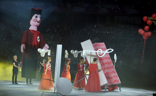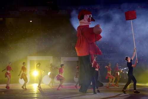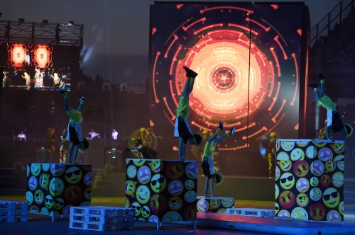 A megnyitó egyik különlegessége volt, hogy a jelenlévők nem csupán passzív nézői, hanem aktív részesei is lehettek az eseményeknek. A program elején kiosztott speciális karkötők segítségével maguk is hozzájárulhattak a lenyűgöző látványhoz. Hol vihart produkáltak, hol a jelenetek hangulatához illeszkedő színbe burkolták a lelátót, hol pedig az egyes nemzetek zászlóit jelenítették meg stadionnyi méretben.