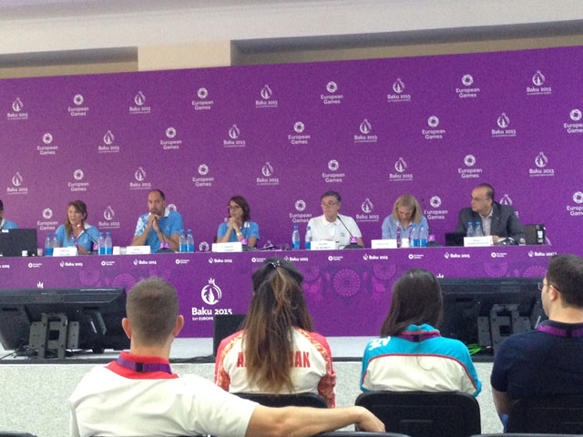 A fiú vízilabdázók szerda reggel 6:30 óra körül, másfél óra késéssel érkeztek meg az azeri fővárosba. A faluba jutás, a szobák elfoglalása zökkenőmentesen ment. A csapat tagjai lepihentek, majd egy könnyű ebéd után edzést tartottak a Vizes Sportok Központjában, közösen a szlovák válogatottal. Csütörtökön két edzés szerepel a tervek között.