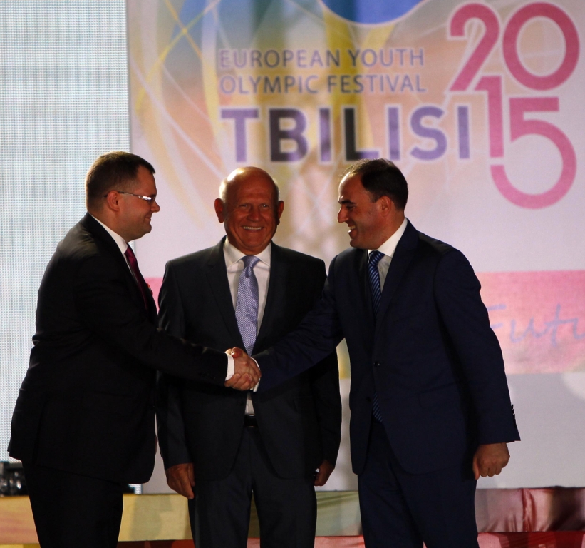 Ahogy ilyenkor szokás, felhúzták a következő rendező ország zászlóját, ezúttal a magyart. A 2017-es rendező város nevében Győr alpolgármestere, Fekete Dávid mondott köszöntőt, aki a grúz vendéglátóktól átvette a "stafétát". Az Európai Olimpiai Bizottság zászlóját Tbiliszi polgármestere, Davit Narmania adta át Győr képviselőjének.