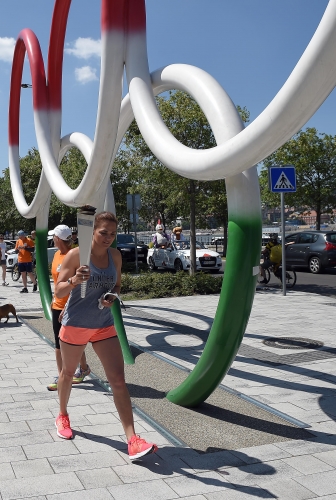 A pénteki esti megérkezést, majd éjszakai sárkányhajózást követően szombaton Budapesten folytatta útját az EYOF-láng. A futókat több olimpikon közt Fábián László MOB-főtitkár, EYOF-csapatvezető is köszöntötte.