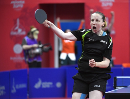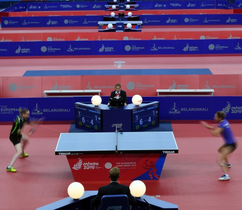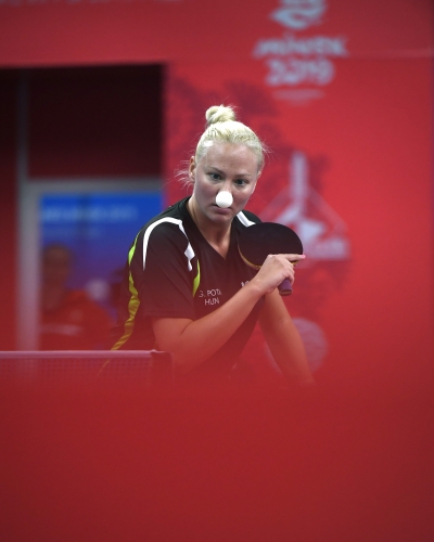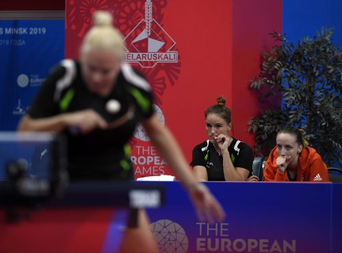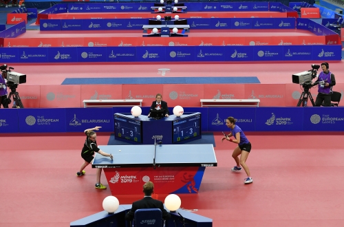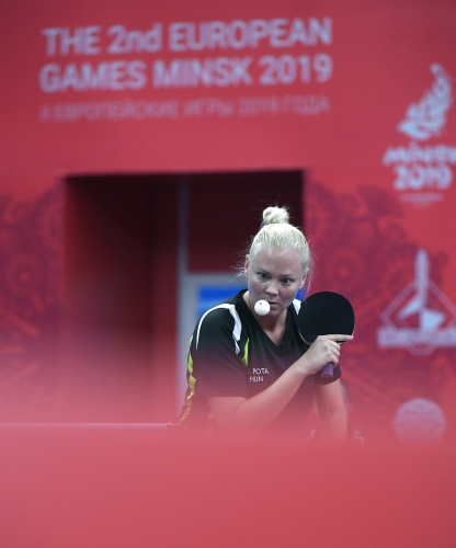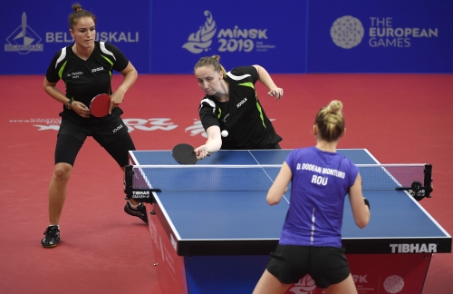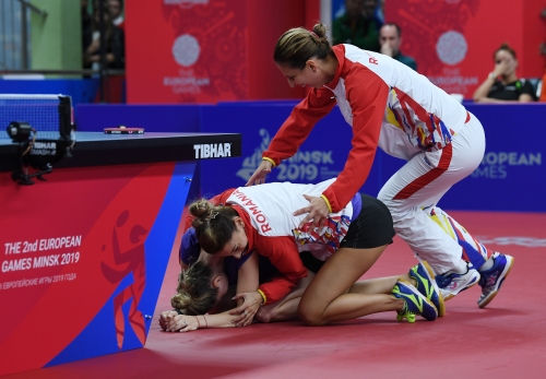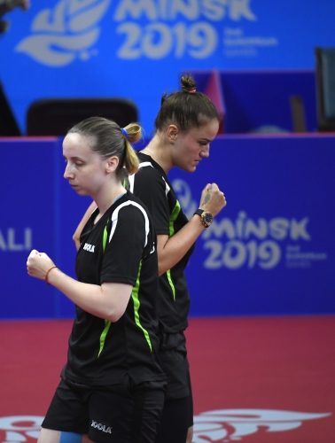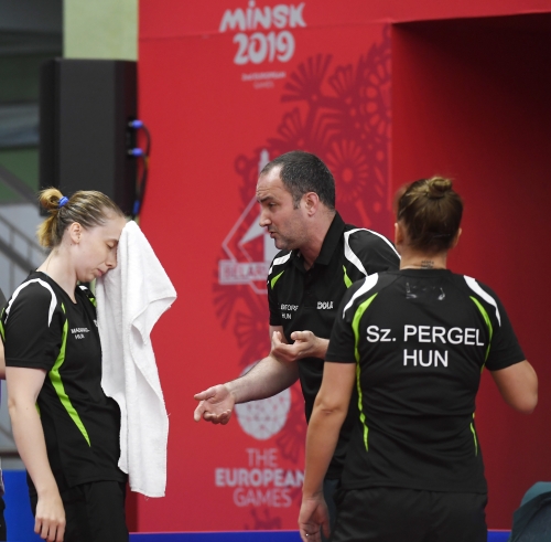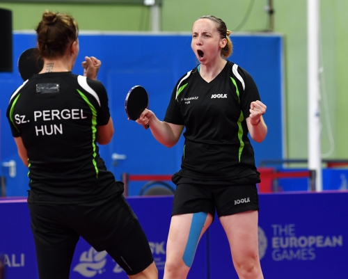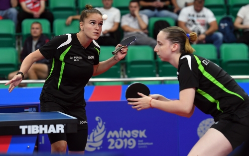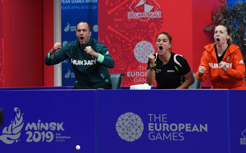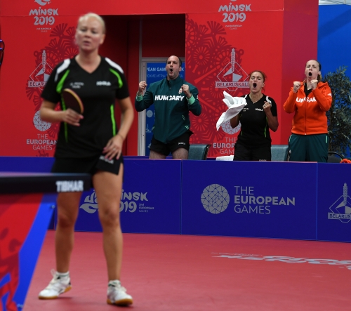 A magyar női asztalitenisz-válogatott óriási csatában 3-2-re kikapott a románoktól a minszki Európa Játékok csapatversenyének elődöntőjében, így szombaton a bronzéremért játszhat a lengyelekkel. Az aranyért járó tokiói olimpiai kvótáról azonban már biztosan lemarad. Eredmények: Daniela Dodean-Monteiro, Elizabeta Samara - Pergel Szandra, Madarász Dóra 2-3 (-9, 6, -6, 9, -10), Szőcs Bernadette-Póta Georgina 3-0 (9, 7, 9), Samara-Madarász 2-3 (7, -6, 9, -7, -8), Szőcs-Pergel 3-1 (-7, 10, 9, 4), Dodean-Póta 3-2 (6, -7, -12, 6, 10). A másik elődöntőben az első helyen kiemelt németek nagy csatában győzték le 3-2-re a hetedikként rangsorolt lengyeleket, így a torna szombati zárónapján előbb magyar-lengyel bronzmeccset, majd román-német döntőt rendeznek, magyar idő szerint 9, illetve 12 órától. A győztes csapat már biztosan ott lehet a 2020-as ötkarikás játékokon.