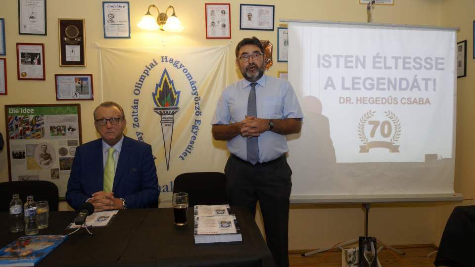 Gombostűt sem lehetett volna leejteni a Halmay Zoltán Olimpiai Hagyományőrző Egyesület szombathelyi rendezvényén: a Malom utcai Olimpia-teremben a 100. magyar olimpiai aranyérem tulajdonosa, a 70. születésnapját szeptember 6-án ünneplő dr. Hegedüs Csaba volt a vendég.