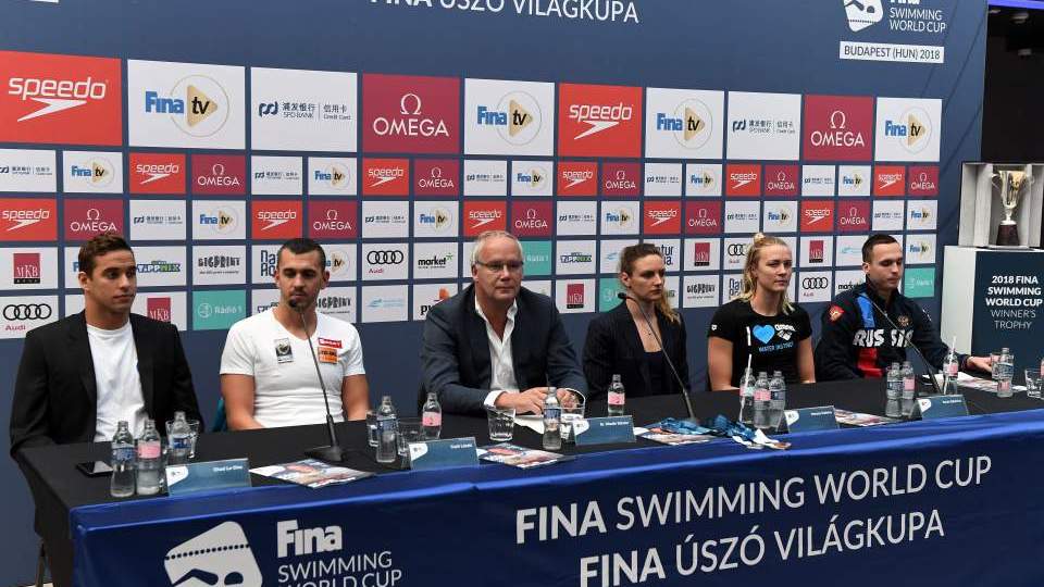 Hat olimpiai aranyérem tulajdonosa, két világbajnokkal kiegészülve jelent meg a csütörtökön kezdődő budapesti rövidpályás úszó világkupát felvezető sajtótájékoztatón.
