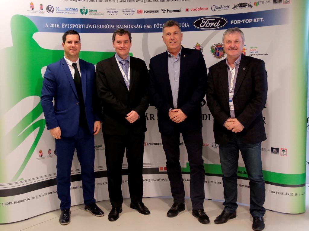 Szabó Bence, a MOB főtitkára és dr. Bartha Csaba sportigazgató-helyettes szerdán ellátogatott Győrbe, a 10 méteres légfegyveres Európa-bajnokságra. Az esemény első versenynapján tett látogatás jó benyomást keltett a sportvezetőkben.