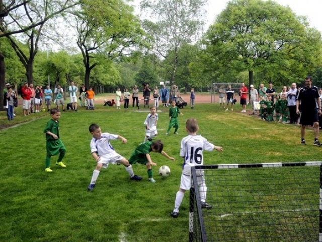 A bontás alatt lévő Albert Stadion gyepszőnyegéből mini futballpályát alakítottak ki a IX. kerületi, Nyúldombként ismert területen.